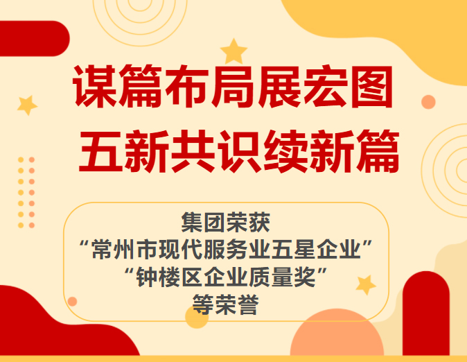 谋篇结构展宏图,,,,,五新共识续新篇——集团荣获“常州市现代效劳业五星企业”、“钟楼区企业质量奖”等声誉